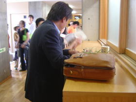 ◆母校 19日の土曜日、母校東海学園東海高校で催される「サタディ・プログラム」に招かれ、講演に行ってきた。 このプロジェクトは一般の人たちも聴講できる公開講座で、在校生が中心となって企画を立て講師の出演交渉もおこなっている。第五回となる今回は3部構成で計47講座の開催。国会議員の討論会やタレントの講演もあり(隣の教室は、イエローキャブの野田社長の講義だった)高校生の主催としてはビックリするぐらいレベルの高い企画だ。もちろんPTAやOBの協力がなければ不可能だろうが。 オイラの講座の方は、高校生ではなくむしろ中学生と年配の方々が多く、教室に入りきれず窓ガラスを開けて廊下で聞いてくださるお客さんもいたほど盛況だった。